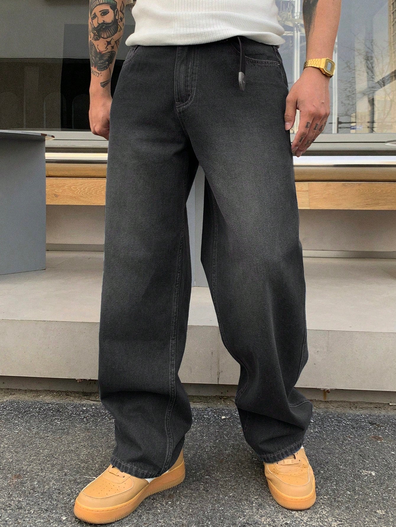 DAZY Men's Casual Straight Leg Washed Baggy Jeans Dark Grey