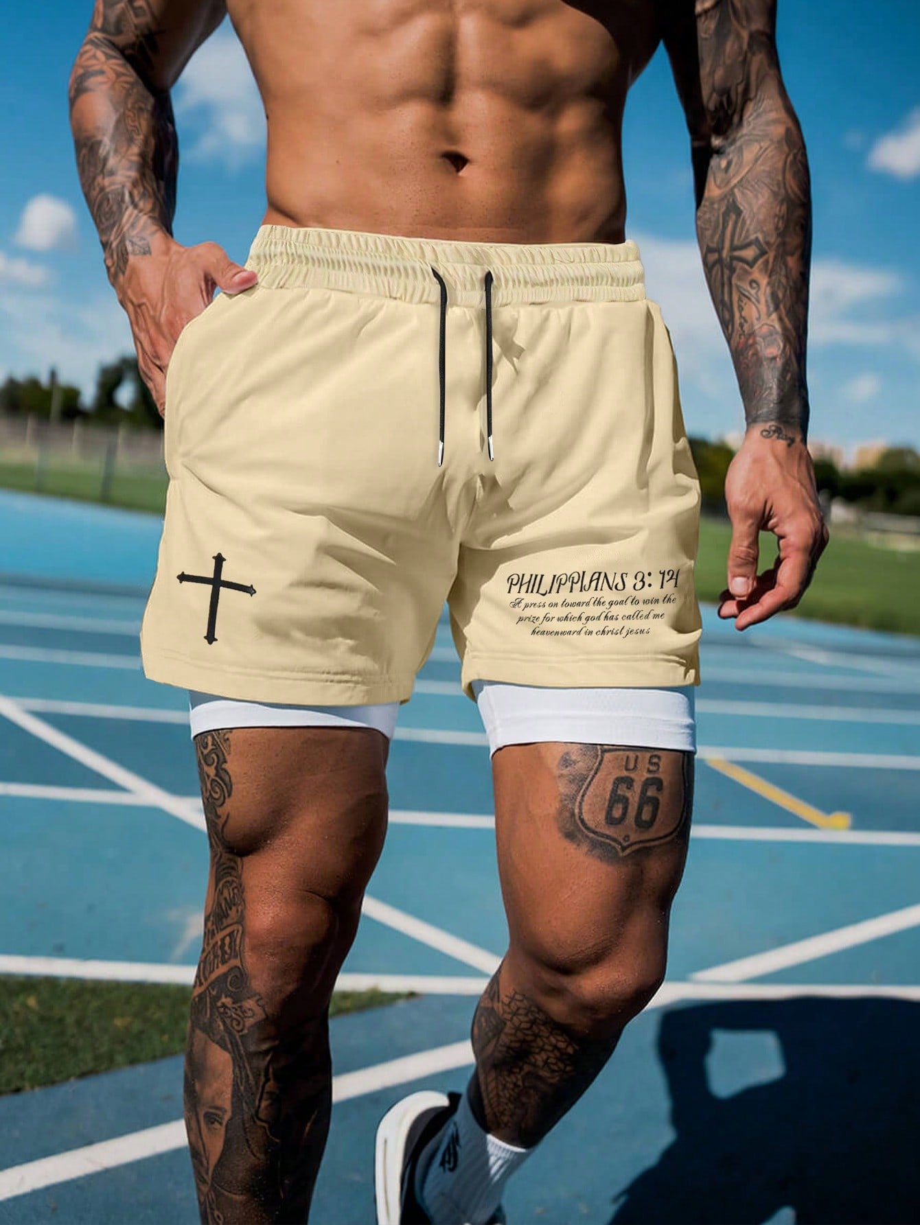 Manfinity LEGND Men's Slogan & Cross Printed Drawstring Waist Casual Double-Layer Shorts, For Husband, Boyfriend Gifts Multicolor